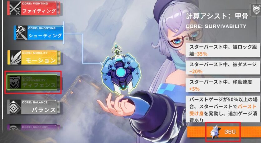 「ディフェンスコア」防御力(生存力)を高めてくれます。