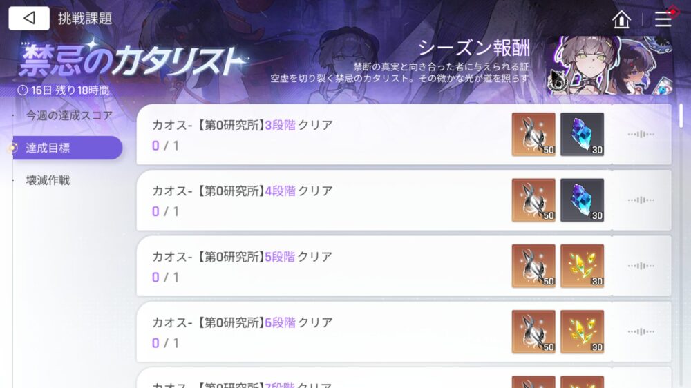 「銀河系災害」には「期間中のみ挑戦できるカオス」が実装されるのは上述の通りです。