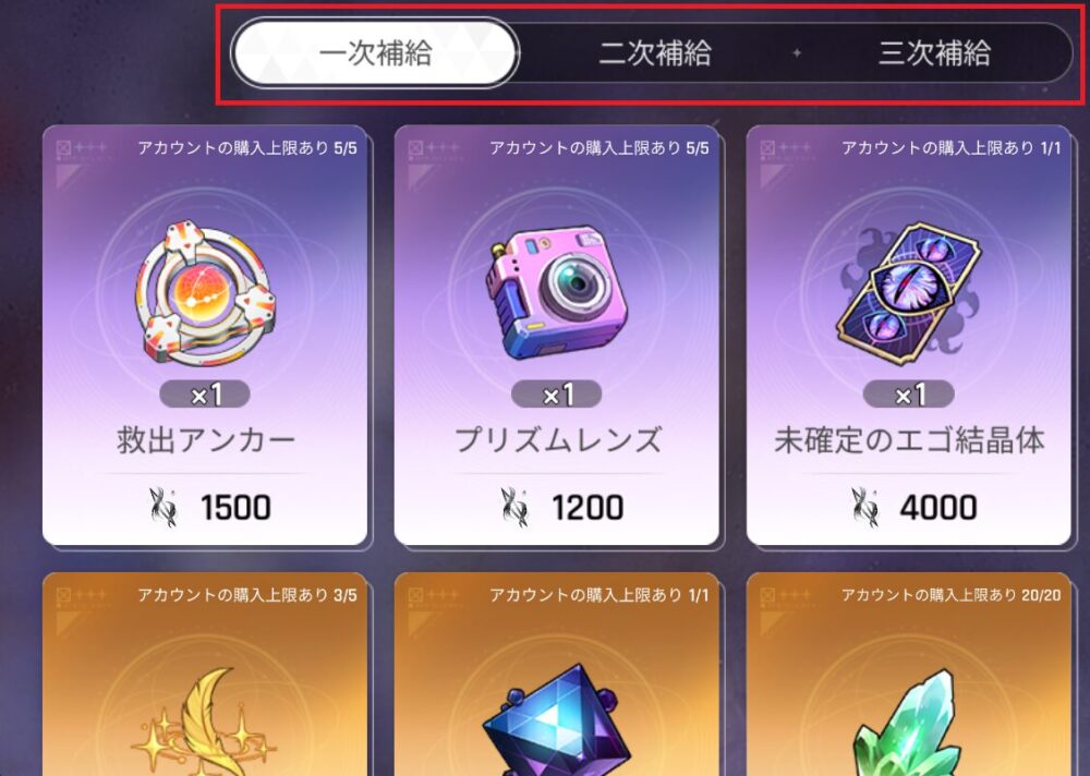 シーズン中「一次/二次/三次補給」と段階的に解放されて行きます。