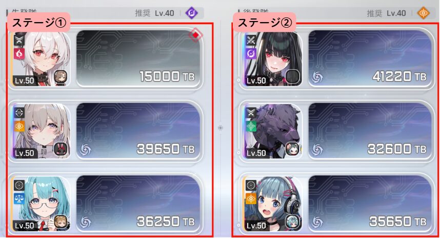 1回の挑戦は2ステージ構成「3人×2パーティー」を作ってそれぞれのステージに挑みます。