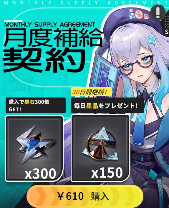 月度補給契約:610円(日本サーバー版)